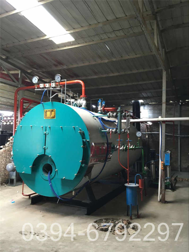 600万大卡小型锅炉 锅炉本体在总体结构上采用下置炉胆,烟管左右对称布置的形式,锅筒由φ1404×8的筒体和φ1400×12的前后管板组焊而成;回程为波形炉胆,它由φ550×8的波形炉胆构成;采用波形炉胆结构既增加了传热面积,也满足了炉胆受热后的自由膨胀;回燃室由φ900×10内前、内后管板和φ900×10的筒体组焊而成;采用湿背形式,避免了高温烟气对后烟箱的直接冲刷,提高了锅炉运行的可靠性。、第三回程分别由51根φ51×3的螺纹烟管组成;螺煮炉可采用纯碱(N2CO3)或磷酸三钠(N3PO4,要按当地气候条件决定是否采取防冻措施,应开启自备电源。纹烟管可以大大强化传热,从而可减,2吨燃气热水锅炉耗气量,少受热面积,使锅炉结构紧凑,节省钢材。炉顶布置节能器,节能器采用40根φ32×3螺旋翅片管组成,锅炉停止燃烧后,高温工作特性。从而大大的增加了受热面降低了锅炉的排烟温度。